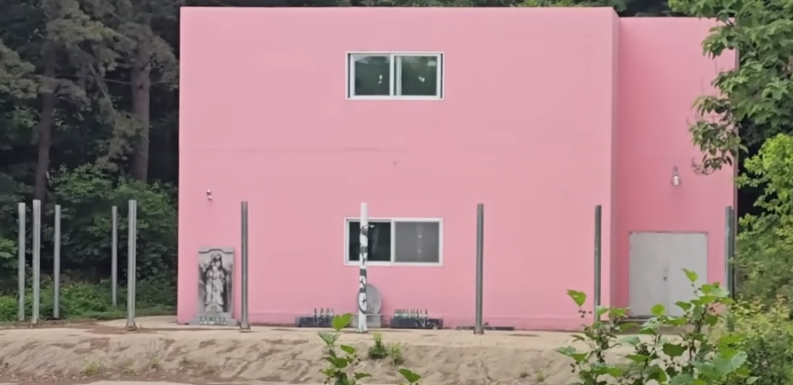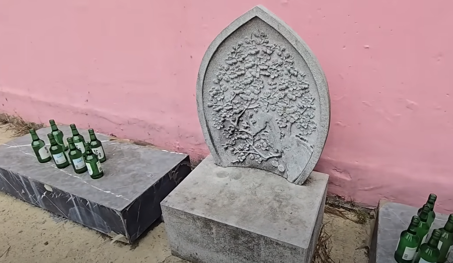 *분홍색의 의미 : 잡귀의 접근을 막아준다는 주술적 의미의 복숭아 색, 납골당으로 추정되는 건물이 핑크색으로 칠해져 있다.