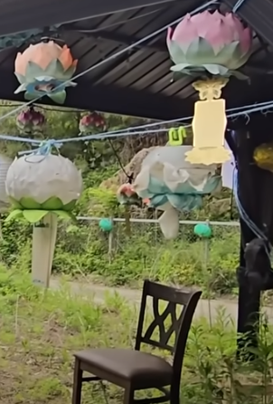 이곳에서 발견된 연등은 '하얀연등'이고, 하얀 연등에는 죽은 이의 이름을 적는데, 윤석열과 김건희의 이름이 있다. 실수일까? 아님 죽은 사람 또는 소 같은 재물이 현생에 있는 사람의 죄를 대신 가져가라는 뜻(새로운 시작)을 의미함일까?