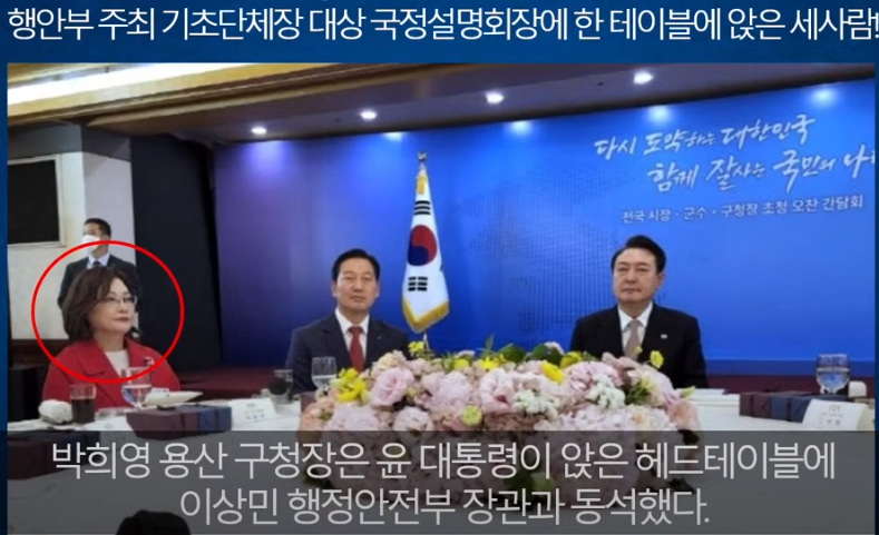 * 10월 28일, 기초단체장 국정설명회장에 윤석열은 왜 이상민 행안부장관, 박희영 용산구청장을 한 테이블에서 자리하고 있지?