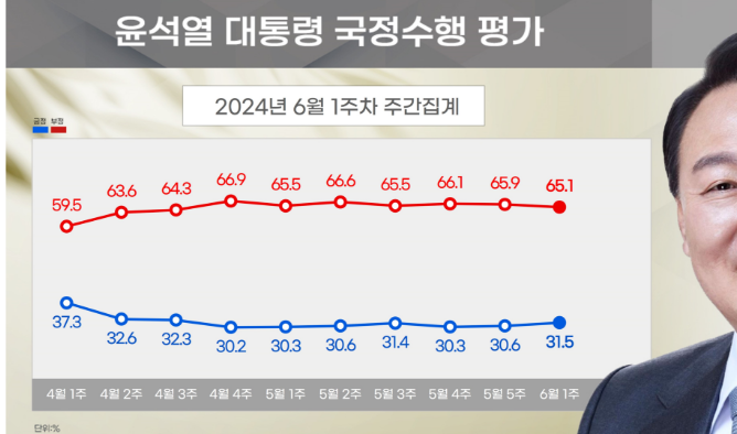 (2024년 6월 5일~7일, 1000명, 무선 97%, 유선 3%, 신뢰 수준에 ±3.1% p)