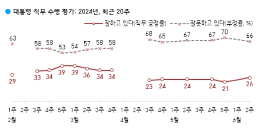 1. 윤석열 대통령 국정수행 평가? 긍정 26%, 부정 66%