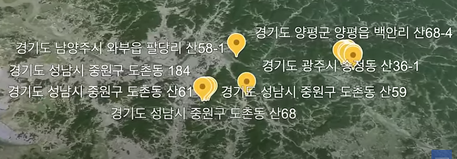 => 송파구 가락동, 경기 성남시, 양주시 등 상당부분이 김충식 땅 포함.(환산시, 약 2200억 이익)