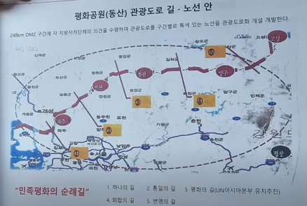 김충식은 '평화공원 동산 길'을 위한 구상을 윤석열 정권에서 이루려고 한 정황이 있다. 겉으로는 평화이지만, 실제는 한반도 전쟁을 위한 일본자위대발판의 구역으로 DMZ라인을 구축한 것이 아닐까 의심된다.
