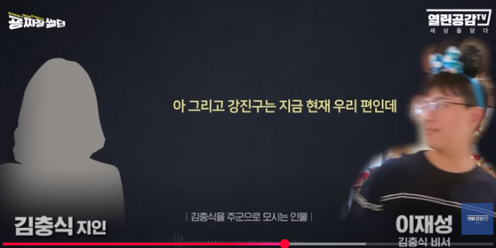 - '이재성'은 뉴탐사의 '강진구'를 밀정으로 김충식 편이라 얘기했고, 강진구도 '김충식'을 쉴드치는 방송을 지속하고 있음.