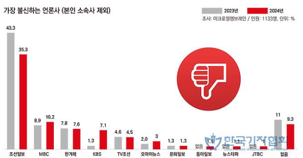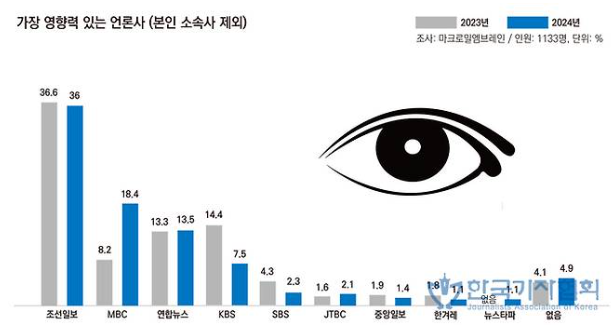 ** 조선일보는 가장 불신하는 언론사, 가장 영향력있는 언론사 연속 4년 1위