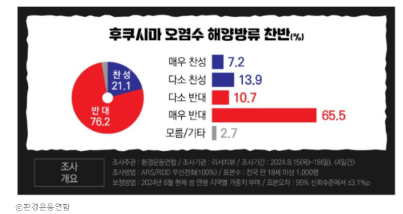 1. 후쿠시마오염수 방류 여부? 반대한다 76.2%, 찬성한다 21.1%