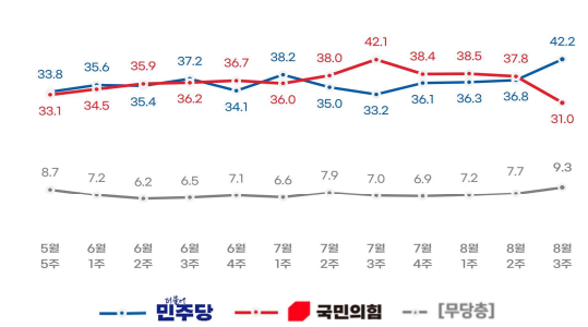 2024.09.03 - [정치] - <24년 9월 여론조사> 윤대통령 지지율 및 정당 지지율 등