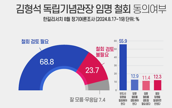 5. 뉴라이트 논란, 김형석 독립기념관장 임명 철회 동의여부 ? 철회 필요 68.8%, 철회 불필요 23.7%