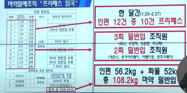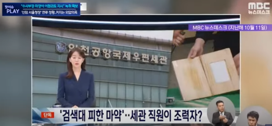 범행과정(검색대 피한 마약)에 인천세관 직원이 조력자였던 것으로 MBC 보도