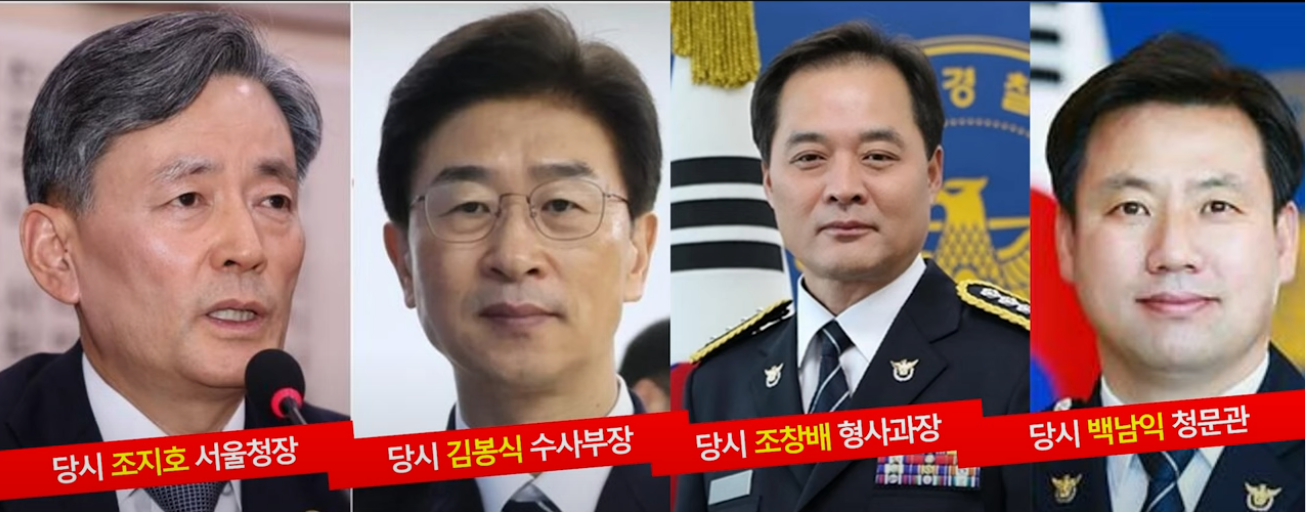 1. 조지호 경찰청장 : 세관 피의자 한 명에게 백해룡을 고발 투서를 국민신문고에 접수하도록 관세청장과 모의=> 위법 내용 찾지 못하자, 애매한 경고처분후 백해룡을 화곡지구대로 좌천