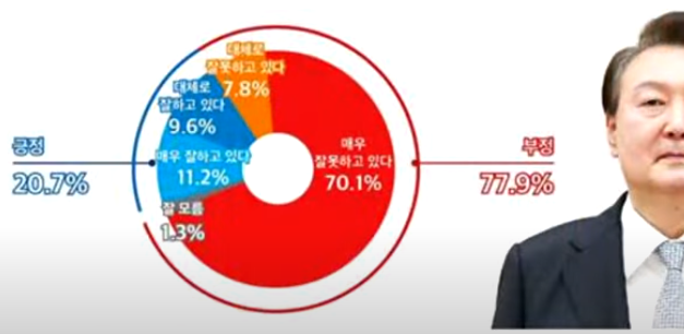 1. 윤대통령 지지율 : 긍정 20.7%, 부정 77.9%