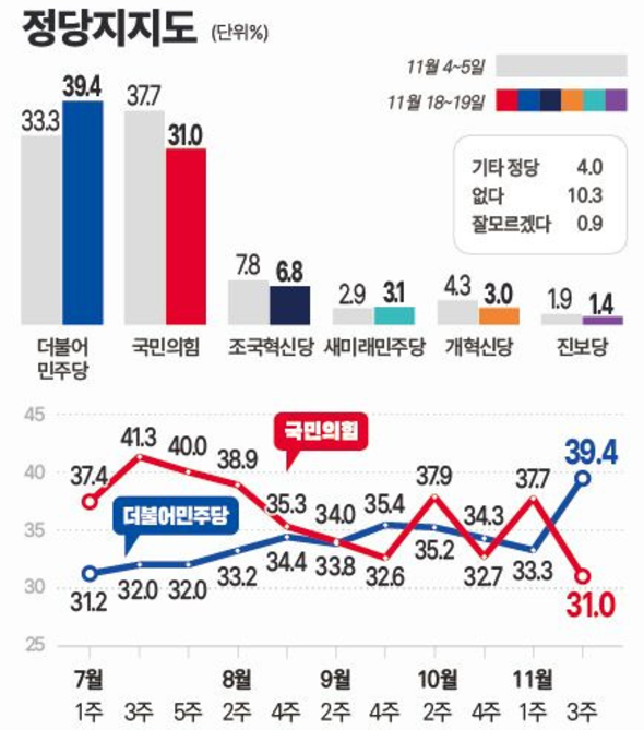 (11월 18~19일, 만 18세 이상, 전국 1000명, 무선ARS, 표본오차 95% 신뢰 수준에 ±3.1%)