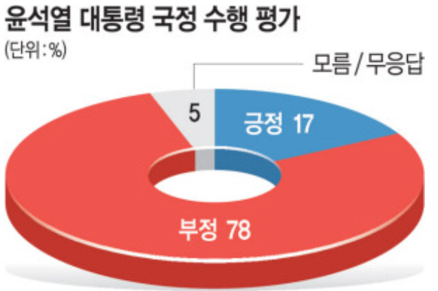 1. 윤대통령 직무수행 평가? 잘하고 있다 17%, 잘못하고 있다 78%