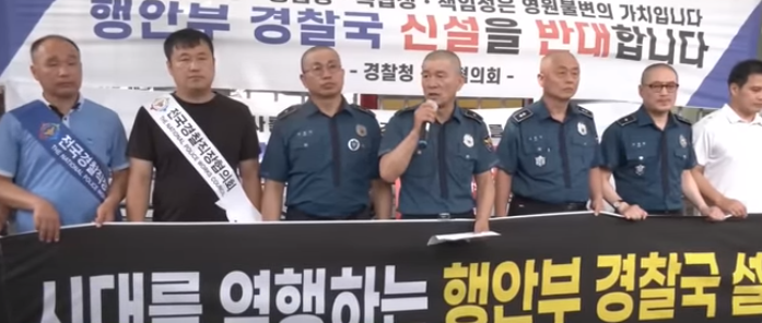 ◆전국 경찰 직장협의회(직협) 민관기 충북 청주 흥덕경찰서 직협회장, 주동회 경남 양산경찰서 직협회장, 한 왕귀 군산경찰서 직협회장 등 4개 경찰서 직협회장들이 서대문구 경찰청 앞에서 경찰국 신설 반대하며 단식/삭발 집회