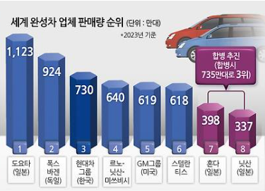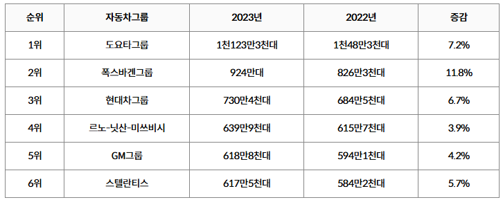 2023년 자동차 그룹별 판매량과 판매순위(각사 발표 취합)
