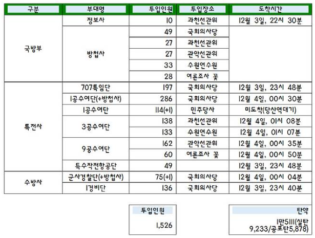 12·3 비상계엄 시 병력수는? 무기지급현황, 도착시간?