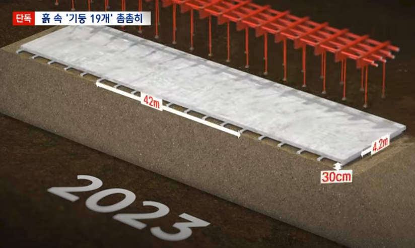 (콘크리트 구조물을 일부 잘라낸뒤 콘크리트 상판(↓)을 추가 설치후 고정 ☞ 콘크리트 둔덕이 무척 단단해짐. )