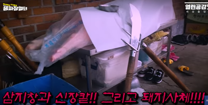 '신용한'이 얘기한 19명이 떼로 큰 굿을 하는 장소(하남)에는 일광사에서 주관한 수륙대제때 보였던 살아있는 소를 찌르고 있는 삼지창과 신장칼이 보인다.
