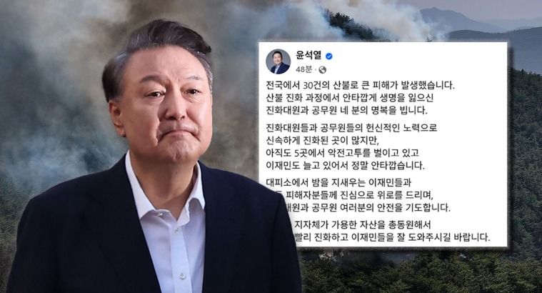지난 3월 21일부터 지금까지 무려 42 여 곳 동시 산불, 6일째 산불은 진화될 기미없이 계속되고 있고, 희생자들이 나오고 있다. 단순한 자연재해일까? 아니면, 윤석열 김건희와 관련된 호마의식일까?