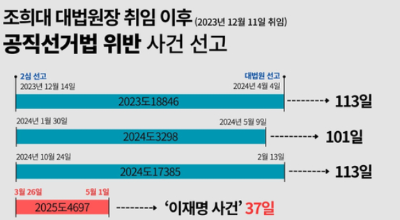 어떻게든 이재명을 무력화 또는 이재명이 대통령이 되는 것을 방어하려는 행동으로 해석된다.대법원이 혼돈과 불확실성의 구렁텅이로 쑤셔 박은 행위를 한 것이다. 많은 법률가 등 전문가들이 이재명의 무죄확정을 예상한 근거였던 그동안의 관행과 시간적 제한이었음에도, 조희대는 이것을 깨버린 것이다.