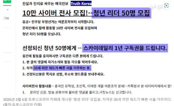 - 대선을 앞두고 부정선거 음모론 도서와 이승만 미화영화 등 리뷰를 써 퍼뜨리면 월 100만원 이벤트