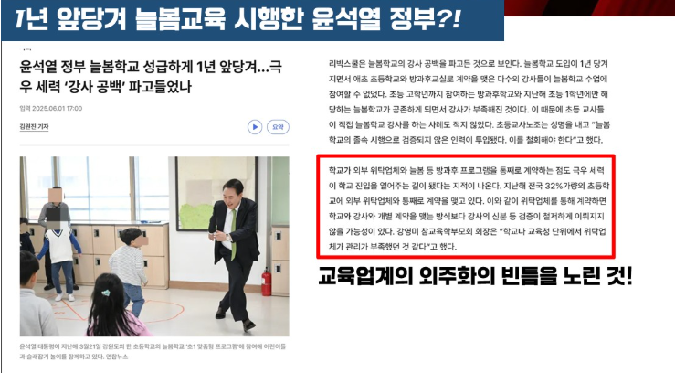 6) 윤석열은 지속적으로 돌봄학교를 지원하여 늘봄학교 육성
