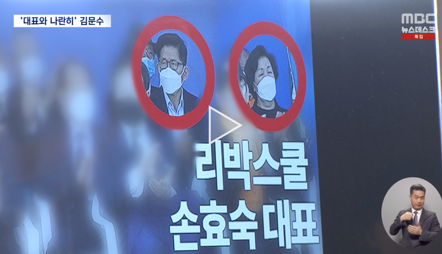 2) 손효숙과 김문수가 나란히 앉아 대화(2022년 4월, '나라지킴이고교연합의 초대회장인 김모씨의 추모대회 참석)