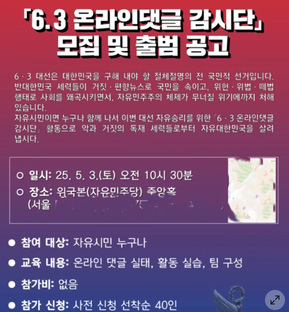 1) '6.3대선 온라인댓글 감시단' 25년 5월 3일 출범 - 김문수가 한동훈을 누르고 국힘 대선후보로 확정된 날