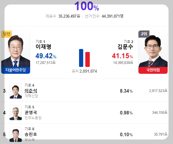 ◈ 선관위 당선 의결(25년 6월 4일, 06시 21분)