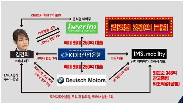 - '김건희 모녀'에게 줄을 대기 위해, 대기업들이 투자를 가장해 돈을 전달(뇌물성 자금)한 게 아닌지 의심되는 지점