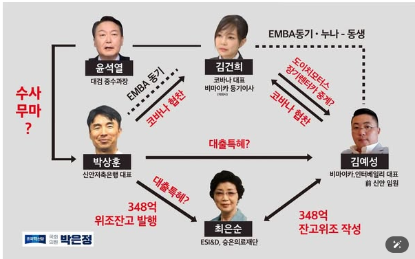 - 파주 병원 건물을 인수시 최은순 암사동 건물담보로 신안저축은행 17억 원을 대출, 최 씨 가족회사인 ESI&D도 신안저축은행으로부터 거액의 대출(박상훈)