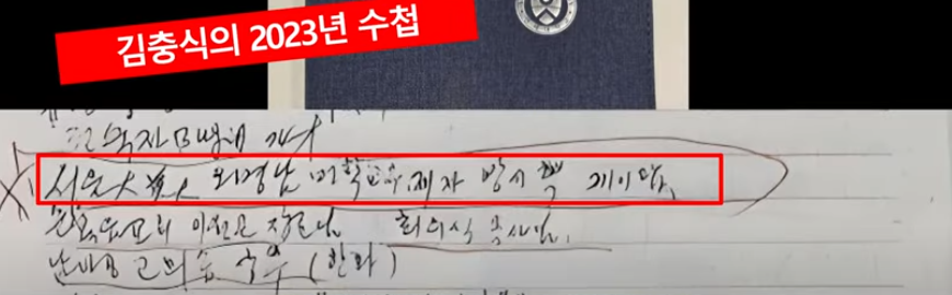25년 7월 21일, 열린 공감 TV는 최은순의 내연남이자 경제공동체이고, 김건희와 일본통일교의 총책이었던 김충식의 비밀노트를 공개했다. 이 비밀노트는 김충식이 쓰던 사무실 등에 버려진 많은 양의 다이어리 등에 적혀 있던 인물들로, 열공은 이들이 김충식이 직간접적으로 교류 또는 연관이 있다고 추측한다. 이 비밀노트에 있는 인사들은 의외의 사람들이 있어 충격적이다.
