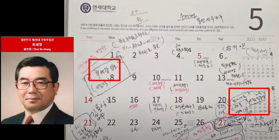 10. 최수종, 하희라, 유인촌, 양재무 감독 : (유인촌) 문화특보, 김대기 비서실장(문화차관), 양재모 감독은 윤석열 대통령 취임식 총괄 음악감독 => 한일평화콘서트 등에서 최수종, 하희라를 MC역할로 맡기려 한 것으로 추측