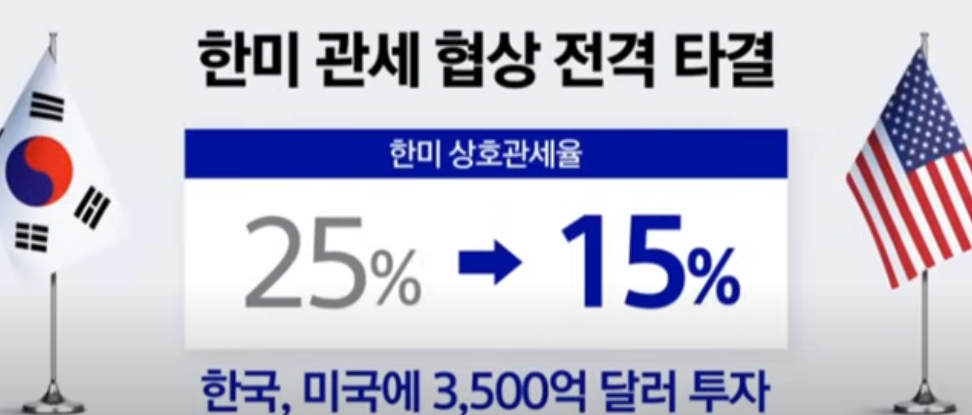 - 25년 7월 31일, 미국과의 관세협상 15%로 타결(미국은 사전에 8월 1일부터 25% 부과를 예고한 바 있음)