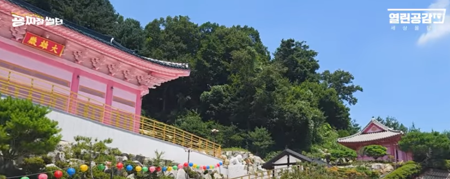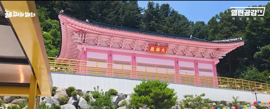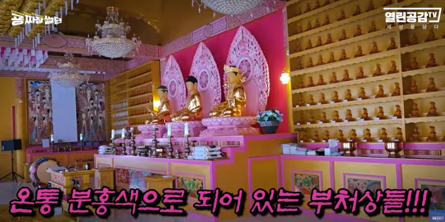 - 꿈에 약사할아버지가 나타나 절을 핑크색으로 지으라고 했다고 함.