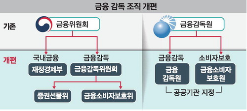 => 금융 부문 담당부처 : 재경부, 금감위, 금강원, 금융소비자보호원(금소원)의 4개 부처로 개편