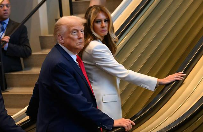 - 트럼프와 멜라니아가 총회장으로 가기위해 에스컬러이터를 타자마자, 멈춰서는 소소한 사고가 있었다.