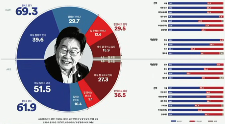 * 부정평가 요인 : 경제 민생 14%, 도덕성 문제 재판 회피 12%, 대장동 사건 검찰 항소포기 압박, 부동산 정책 대출규제 6%