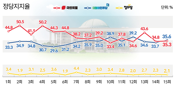 <정당지지율 추이, 출처: 뉴스핌>