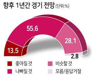 1. 향후 1년간 경기전망 : 나빠질 것(55.6%), 좋아질 것(13.5%), 비슷할 것(28.1%)