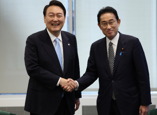 한일 정상회담, 한국 측 선발표에 일본, 안 만나도 좋다는 입장 발표. 이후 결국, 기시다 총리가 있는 행사장에 윤 대통령이 찾아가 30분 약식 회동.