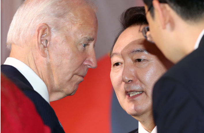 한미 정상회담, '회담'이 아닌 '회동'형식, 바이든 대통령의 '글로벌 펀드 제7차 재정 공약 회의'에 억지로 참석(한국은 초청국 아니었음)하여 막간을 잠깐 스탠딩 하여 인사하는 형식(48초;;;) : 바이든 행정부의 '인플레이션 감축법(전기차 법, IRA)'후속대책 및 한미 통화 스와프 등 거론 불가한 시간